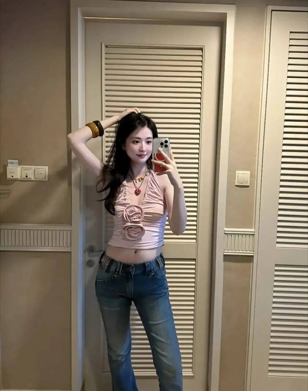 小吊带与紧身牛仔裤的搭配,也在乔欣的时尚中为她增添了几分性感妩媚的气息,她尽情凹着各种拍照姿势,显得落落大方,自然又可爱,并不会让人觉得她很做作。