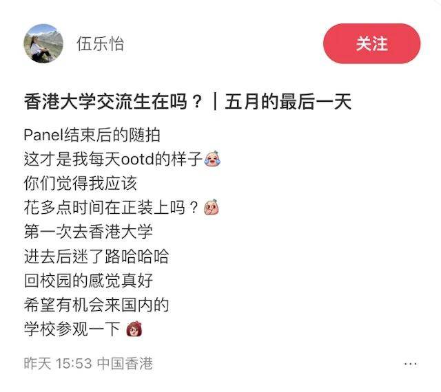 随后她更在港大的校园打卡,回味早年自己还是学生的情景,虽然她不是港大的学生,但港大的环境她表示自己也很喜欢,更因宽阔的校园太大而迷路!